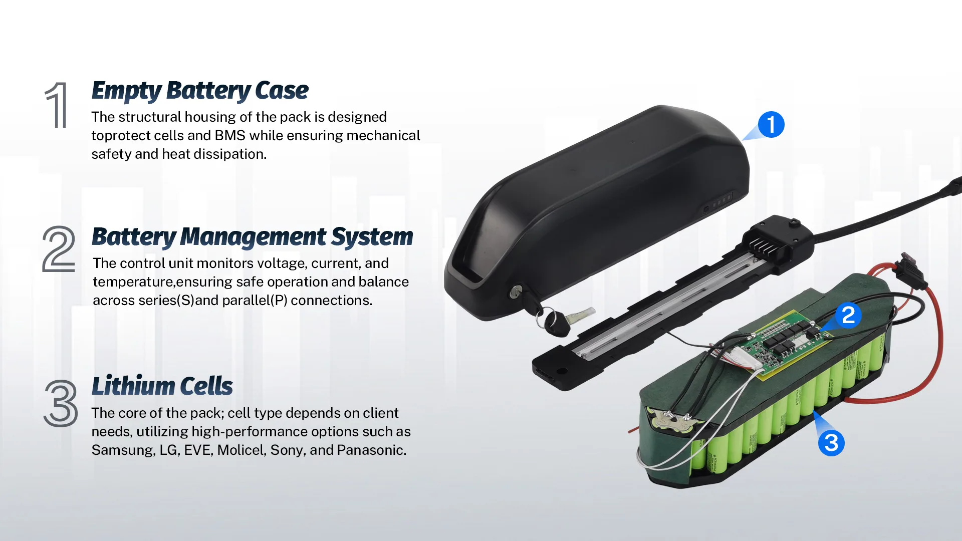 Send your battery requirements — voltage, capacity, casing type (e.g. Hailong, Rear Rack), or upload drawings/photos.